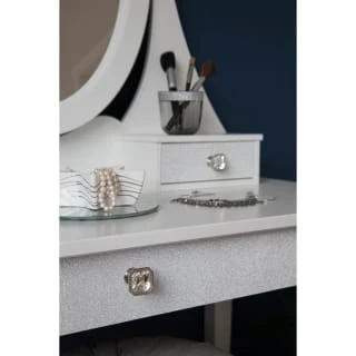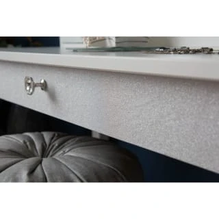 Silver Glitter is a self adhesive vinyl film with flecks of glitter which catch the light, giving a touch of glamour and sparkle to items of furniture and home accessories such as desks, dressing tables, cupboard doors, shelves and picture frames.